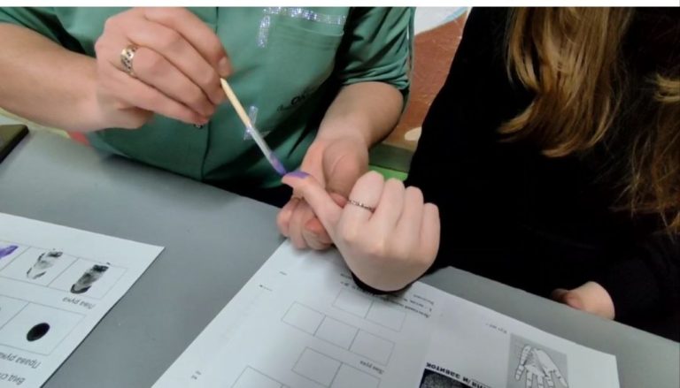 На базі КУ ЗОШ №24 доцент Антоніна БЄСЄДІНА провела захоплюючий біологічний захід з школярами. Учні 9-А класу мали змогу поринути у світ досліджень відбитків пальців, дізнатися більше про таємниці дерматогліфіки. Про те, що за унікальним малюнком відбитків пальців можна зрозуміти потенціал людини, а також її сильні та слабкі сторони, можна ідентифікувати людину. Відбитки пальців можуть розповісти про характер, поведінку, склад розуму і темперамент, спортивні здібності, а також про інші особливості.