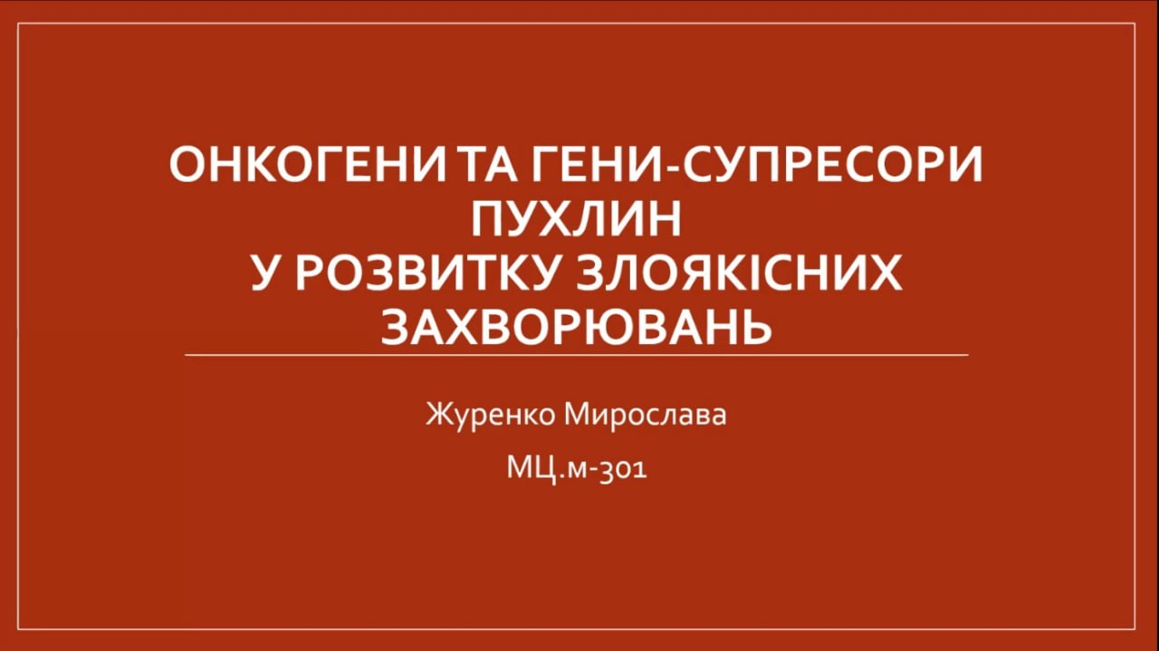 Роль онкогенів і генів-супресорів у розвитку злоякісних новоутворень (Журенко Мирослава, МЦ-301),