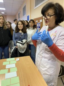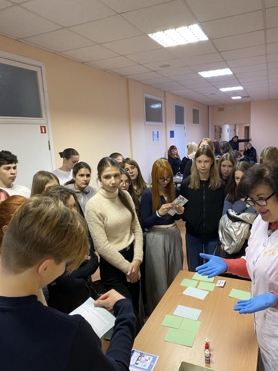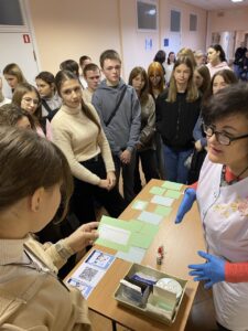 Зоя Левченко, асистенка кафедри , надала поради майбутнім абітурієнтам, як готуватися до вступу, до вивчення предметів медичного спрямування і виявити нові можливості, в майбутньому досягти успіху у своєму професійному житті. Також були проведені інтерактивні заходи: експеримент з визначення групи крові, вікторина про кров людини. Присутні отримали цікаву інформацію про великий науковий та освітній потенціал ННМІ та кафедри, про досягнення викладацького колективу кафедри. Учням було цікаво довідатись про студентське життя у НН МІ.
