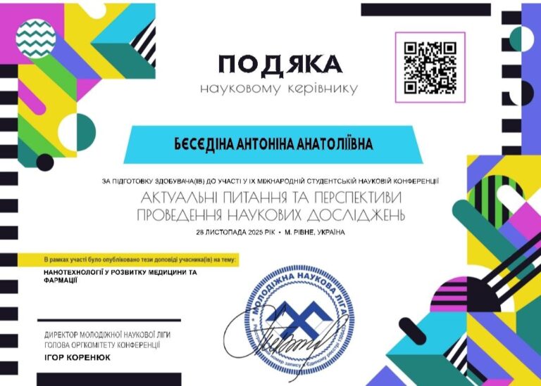 On November 28, 2025, in Rivne, Ukraine, the IX International Student Scientific Conference “Current Issues and Prospects for Scientific Research” took place.