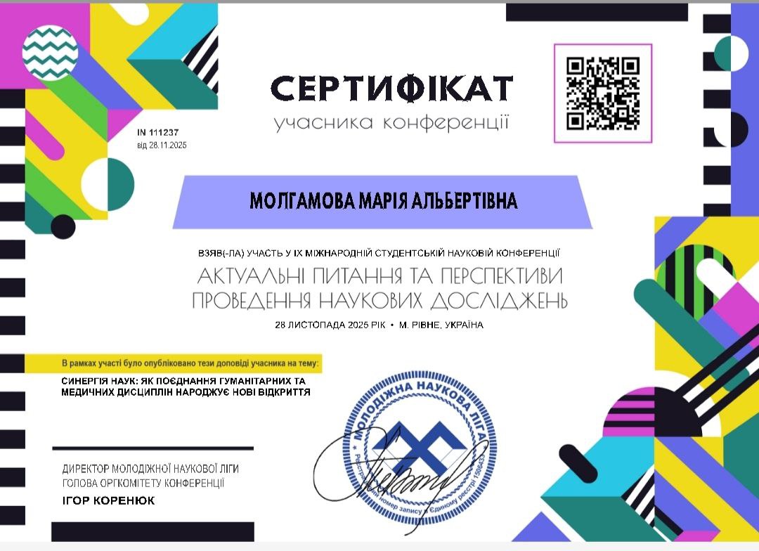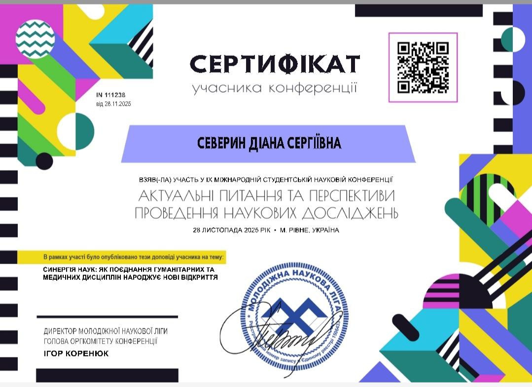 On November 28, 2025, in Rivne, Ukraine, the IX International Student Scientific Conference “Current Issues and Prospects for Scientific Research” took place.