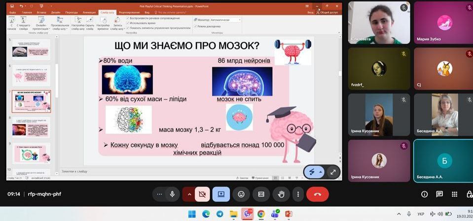 Brain Awareness Week 2026 is underway. On March 19, Associate Professor Antonina Biesiedina delivered an engaging lecture titled “What Do We Know About the Brain?” for 10th-grade students of Municipal Institution Lyceum No. 33 of the Sumy City Council. The lecture was aimed at addressing one of the Sustainable Development Goals—“Good Health and Well-Being.” The event sought to raise young people’s awareness of the importance of maintaining both physical and mental health, promote knowledge about how the brain works, and encourage a responsible attitude toward one’s own health.