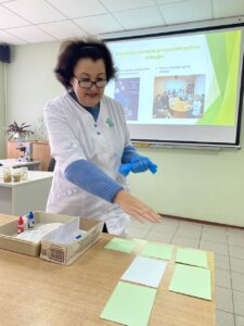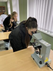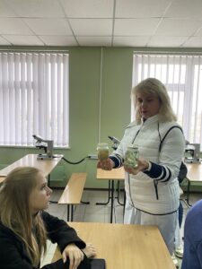 Антоніна БЄСЄДІНА та Зоя ЛЕВЧЕНКО не тільки ознайомили присутніх з нашою кафедрою, навчальними дисциплінами, науковими дослідженнями та роботою наукових гуртків кафедри, а також провели інтерактивні заходи: презентація про нашу кафедру та її досягнення, ознайомлення з мікропрепаратами та відвідування музею з медичної біології, вікторина про кров людини, експеримент з визначення групи крові. Найактивніші студенти медколеджу отримали призи.