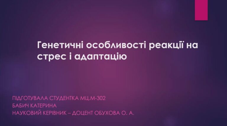 Бабич Катерина Василівна (МЦ.м-302) – «Генетичні особливості реакції організму на стрес і адаптацію»