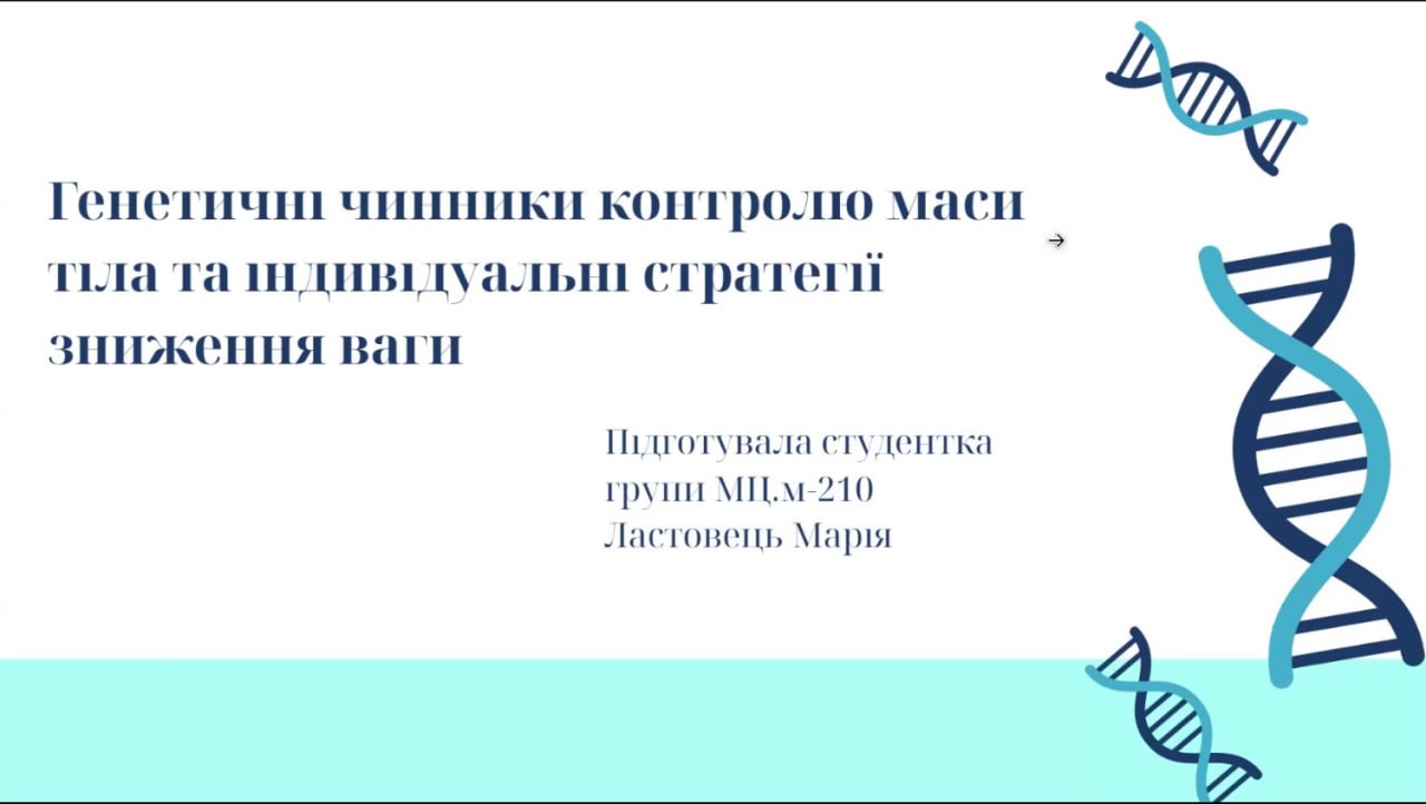 Ластовець Марія (МЦ.м-210) – «Генетичні чинники контролю маси тіла та індивідуальні стратегії зниження ваги»